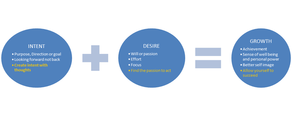 The first part of the growth equation is intent; however, we need more than intent. The purpose or reason for personal growth should not be to appease others or because someone thinks we should or for our ego’s. It should reflect our desire to live life to the fullest. This means trying to be the all we can be so we get the most out of life. You have likely heard this before; it is the selling point for many personal growth or wealth building seminars and books.