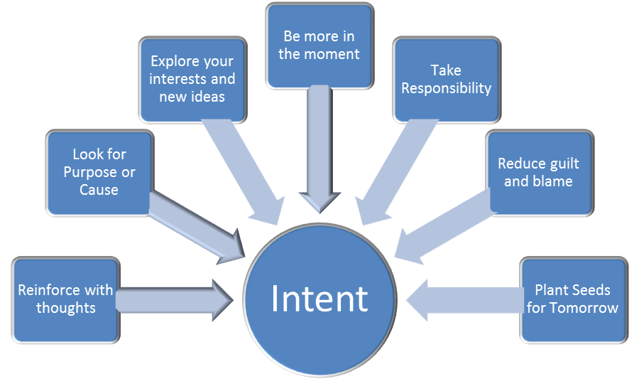 One might feel that when serious issues arise one simply goes about fixing it. This presumes one has the intent already, and need not find it. What about those people who have difficulty getting themselves started? There is also hope for those in this category: you must plant the seeds for tomorrow. We do this by setting up a thought process similar to the following: “I will develop the intent, and I will be <you fill in the blank>”. This act starts the process of developing one’s intent to grow.