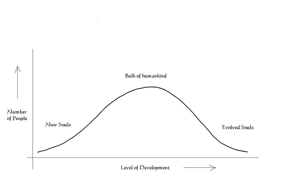 However, it seems that many see it differently or imagine it differently. They see mankind’s progress as moving more and more people to the right so that there are more and more people getting closer to enlightenment. But this assumes that those who are at the higher end of the curve now stay there. As wonderful a thought as this may be, it has not been born out, and I do not believe it will. Evolution is a slow and steady process, and while I believe the pace is increasing, I do not believe that suddenly billions of people will ‘wake up from the illusion’. This is not a pessimistic view, it is a realistic one. There is much to learn, far more than many believe.